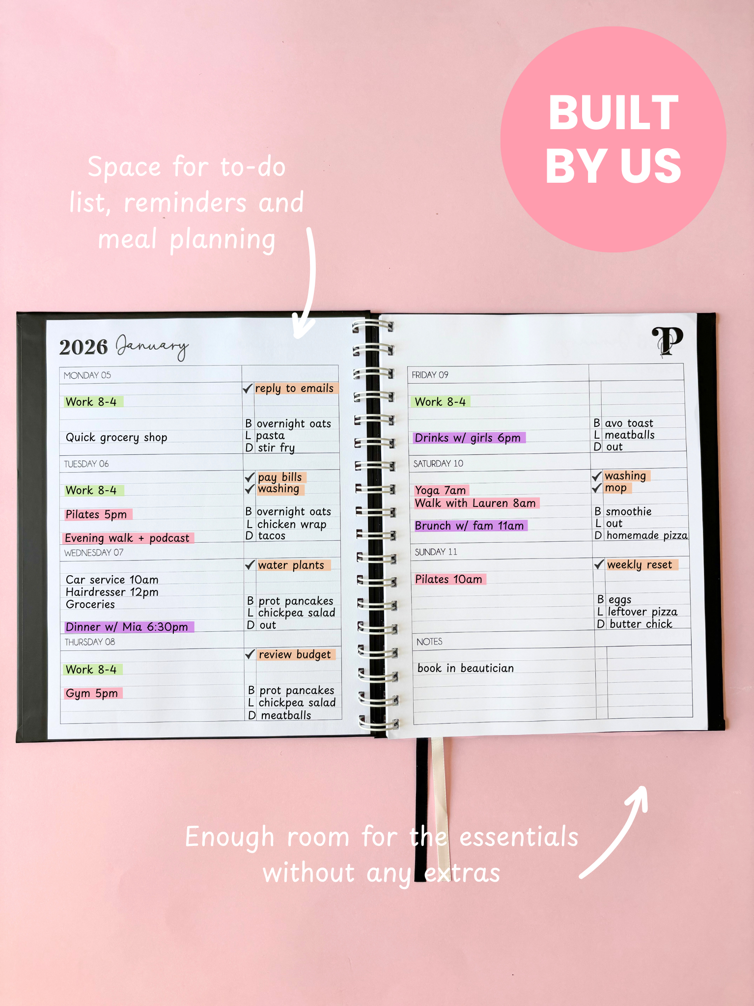For those who love structure without the extras. A week across two pages gives you just what you need, no clutter, no fuss.
